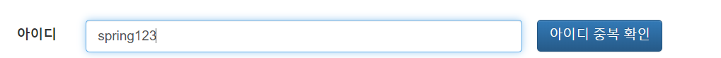 위와 같이 화면에서 아이디를 입력하고 아이디 중복 확인 버튼을 누를 시